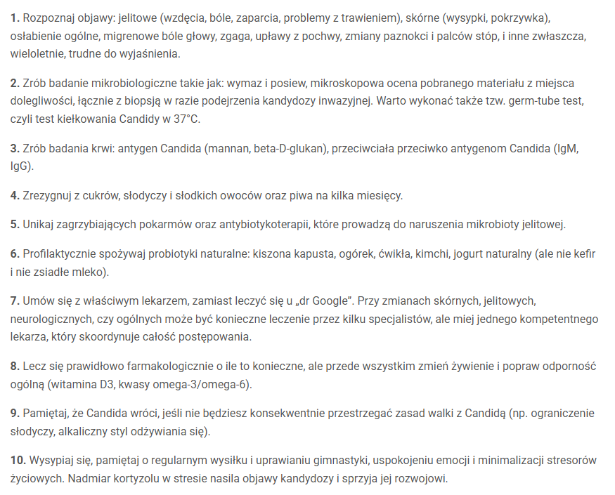 Oto 10 przykazań według dr n. med. Mirosława Masteja, w walce z Candidą!